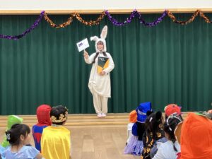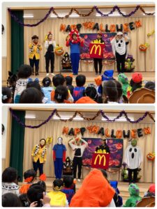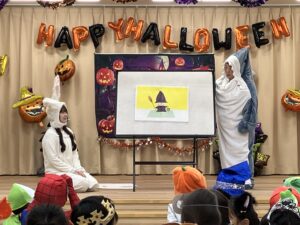 先生たちのハロウィンシアターに夢中な子どもたち👀